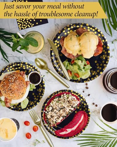 224 Pieces Party Supplies, Black and Gold Party Plates Cups and Napkins Sets with Plastic Knives forks spoons, Disposable Tableware Serves 32 Sets for Wedding, Birthday, Graduation, Festivals