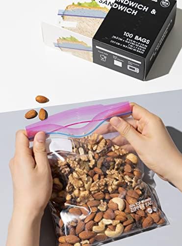 24/7 Bags- 100 Count, Sandwich & XL Sandwich Bags, Easy Open Tabs, Zip-Lock, Food Grade, Writable Rectangle (50 Bags Each Size)