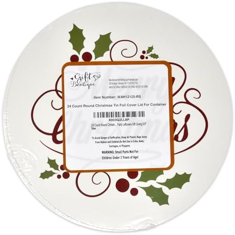 24 round Christmas aluminum container lid covers will make the perfect addition to your holiday presents! Features Merry Christmas in the center with holly leaves and berries design. Bake up some Christmas spirit with these Christmas pan lids! Buy any round tin foil containers and add these covers to seal them! They will greatly enhance your treat containers to spread some holiday cheer! These beautiful foil container lids for your homemade treats will add holiday cheer to your Christmas party so you can rest assured that everyone will love your incredible Christmas homemade goodies or candies! The foil food containers are made with strong paper that can maintain the temperature of your handmade treats so you can give your loved ones cookies fresh from the oven. Set them out at your party’s dessert buffet table as containers for your guest to take home their leftovers in an easy and fashionable manner! Great Size 8.6” diameter.