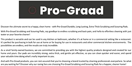 Medium Duty Blue Durable Long-Lasting Extra Thick Scouring Pads Fight Tough Messes with Abrasive Cleaning Power. These professional grade scrubbing pads provide maximum cleaning power with nylon weave designed to scour the toughest messes. These pads are great for home and commercial use, even for the most demanding janitorial jobs. Fight Dirt, Grime and Stains With Ultra-Strong Abrasive Power. The Pro-Graad blue scouring pads are made with coarse nylon designed for aggressive cleaning. The pads will cut through limescale, rust, mineral deposits, soap scum in the bathroom and stubborn grease, food residue and dirt in the kitchen. Just add a little elbow grease to make any surface clean and sparkle. Great for Any Hard Surface, Commercial or At Home. Use on vinyl, tile, acrylic, steel grill grates, ranges and other nonporous surfaces. Great for use at home and commercial settings like restaurant kitchens, bathrooms and common areas. Ultra Durable Material Built to Last. Our scourers are made to last. While competitors pads shred, disintegrate and knot, resulting in an inconsistent clean, Pro-Graad scrubbing pads are designed to be durable, longer lasting and clean better than competitor products. The pads are reversible and will not be affected by water, detergents, or cleaners. Cut to Size or Use With a Universal Pad Holder. The pad can be handheld or used with a universal scrubbing pad holder. What’s in the Box? The pack includes 24 pieces 3.5″ x 6″ Blue medium-duty scouring pads. Each pad is 0.87″ thick for extra durability and lasting performance.