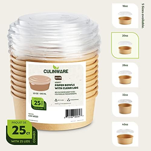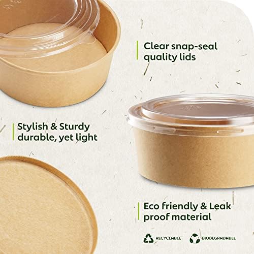 These CULINWARE green, white and kraft paper food bowls, with clear lids, can be used for hot or cold foods and favorite treats. The secure lid fit and microwave-safe materials, making it the perfect grab and go container. Perfect for delis, cafeterias, c