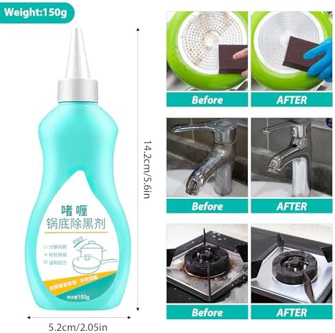 【Widely Applicable】: The magic gel cleaner for black pot bottom can not only be used for ceramics,casseroles and stainless steel pots and pans,but also for cleaning glass teapots,stainless steel kettles, aluminum pans,gas stoves, kitchen utensils, porcelain plates,etc.Remove heavy dirt and extend the lifespan of items.