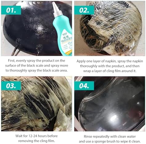 【Environmentally Friendly and Odorless】 :The black scale cleaner at the bottom of the pot does not produce harmful gases, has no irritating odor, and is environmentally friendly and odorless. You can use the shiny and new flat bottomed pot to make delicious dishes with peace of mind.