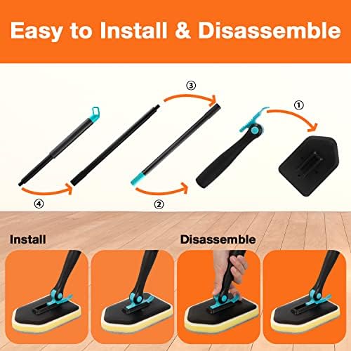 🎁♥【3 in 1 Different Functions Head】- This floor scrubber brush contains 3 x Scouring Pads,1 x Stiff Bristle Brush, 3 x Microfiber Clothes. The stiff brush is suitable for cleaning difficult spots. The sponge head can be used to use stubborn stains on more delicate surfaces. Use ultra -fine fiber pads to wipe things and avoid scratches.