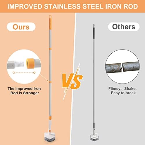 The Tub Tile Scrubbing Brush Telescopic Pole extends 49” for quick installation without bending or climbing. Relax your back and stop bending, stretching, kneeling, or squatting. Easier to clean, especially for those with back and knee problems.