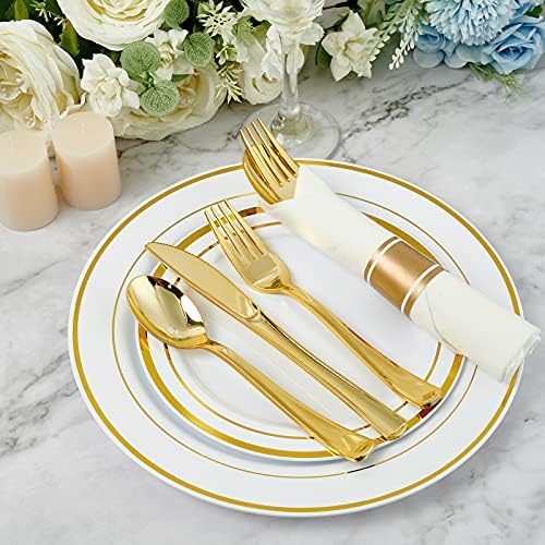 【Disposable & Easy To Clean】This plastic silverware can be easily disposed of or recycled for quick party clean-up, perfect for wedding receptions, anniversaries, birthday parties, barbecues, or even usual home dinning. Tip: these gold disposable utensils are not recommended for microwave, oven, or dishwasher