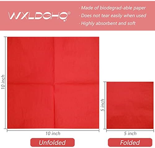【High Quality】Our WXLDGHQ red paper napkins are made of high qualitypaper.so they can be used throughout an entire meal without wearing down or easily tearing.And red paper napkins make drying your hands easy thanks to their ultra-absorbency.