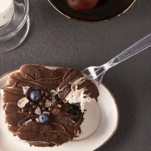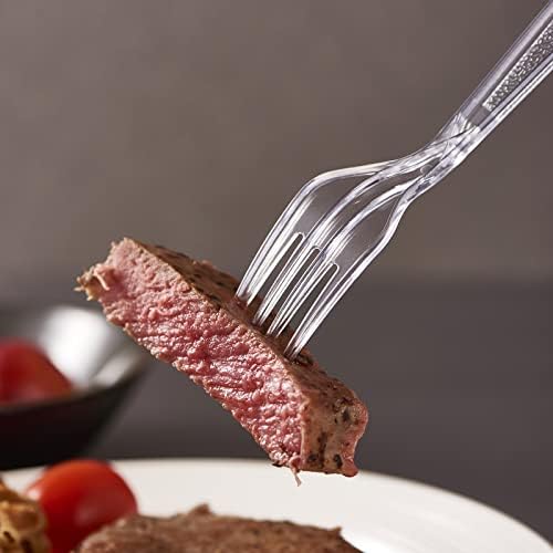 Elegant Designe – The fancy design make the forks perfect for any event, occasion, party, weddings, picnic, or indoor and outdoor activity. Crystal clear color adjusts with any silverware utensils. The handle features an intricately engraved design to add a touch of sophistication to your table set. Thanks to its smooth, rounded edges, the plasticware fork provides a comfortable dining experience for your customers.