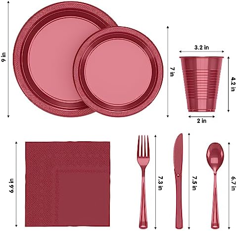 【Great Choice For All Occasions】This Plastic Dinnerware Set is perfect for any occasion such as birthday parties, picnics, or family dinners. It includes disposable cups , plates , dessert plates , cutlery & napkins making it an all in one set for your convenience. Our sturdy construction and modern design party supplies will add that touch of elegance and hold up well at your next event .