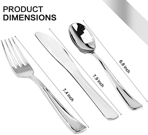 Disposable Plastic silver dinnerware Set 50 Plastic Forks, 50 Plastic Spoons, 50 Plastic Knives.
