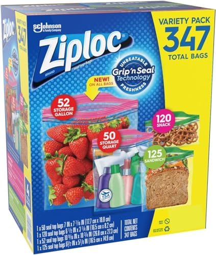 Variety Pack, 347 Bags Features: 52 Gallon Storage Bags 50 Quart Storage Bags 125 Sandwich Bags 120 Snack Bags , 5 ONDAGO Quarter Gallon Bags,