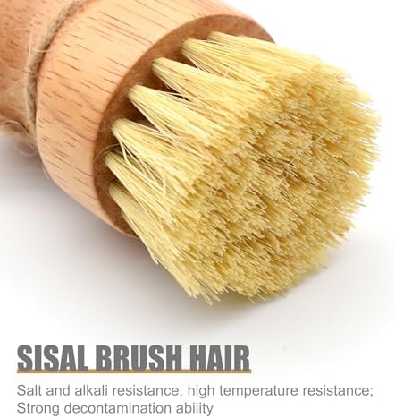 【Mini Round Reachable Design & Heat-Resistant Bristle】Brushes handles are designed to fit your palm providing a comfortable grip, which makes scrubbing easier and more powerful. Plant-based sisal bristles dry quicker than plastic bristles naturally, which makes them non-sticky.