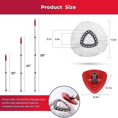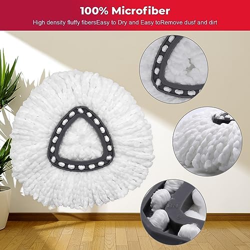 4 Pack Mop Head Replacement for O Cedar Easywring 1 Tank,Spin Mop Replacement Head with 4 Section 30″ to 58″ Mop Replacement Handle,and 1 Extra Mop Base,Microfiber Mop Replace Heads,Easy Replace