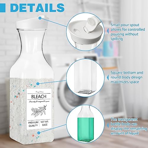 Reasonable Bottle Design Maximizes Your Space:The bottle of the laundry soap dispenser adopts a square bottom and round body design,which can put the washing powder more neatly and tightly in a limited space,and is easy to access.