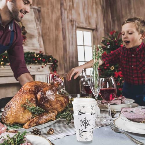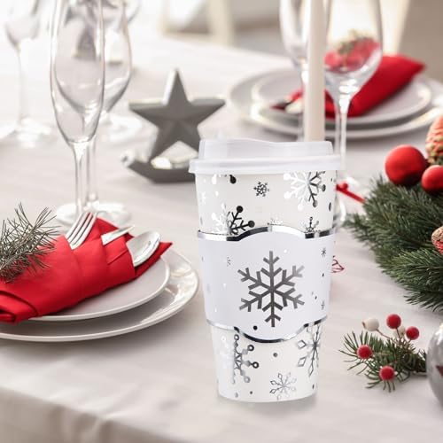 Snowflake Design: our disposable to go coffee cups are printed with multiple silver delicate snowflakes on white background, elegant, stylish, will decorate your beverages well; the corrugated cup sleeves are also printed with snowflake and silver foil trims, ideal for winter holiday occasions and can give you an enjoyable use experience