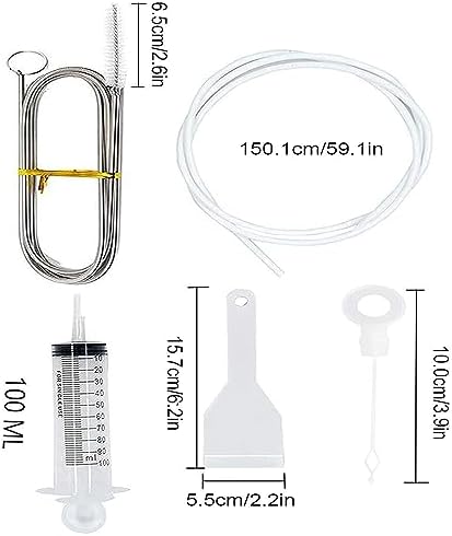 【Package includes】1pc 100 ml syringe, 1pc 1.5M hose, 1pc drain plug, 1pc ice shovel and 1pc cleaning brush for cleaning refrigerator holes.