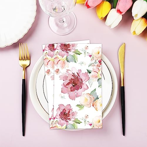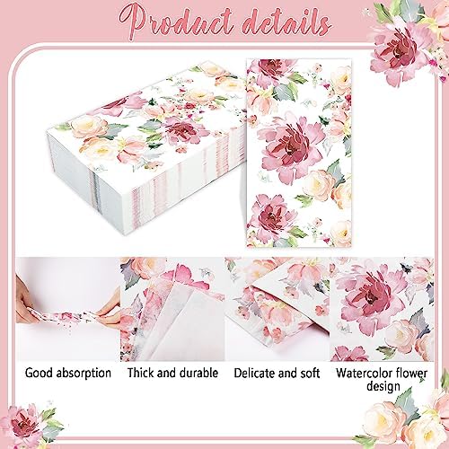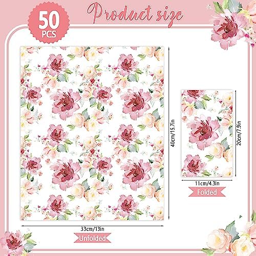 50 PCS Floral Paper Napkins Watercolor Flower Guest Napkins 3-Ply Disposable Dinner Napkins Decorative Paper Hand Towels for Wedding Bridal Baby Shower Tea Party Birthday, 4.3 x 7.9 Inch