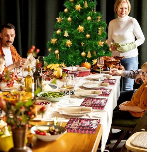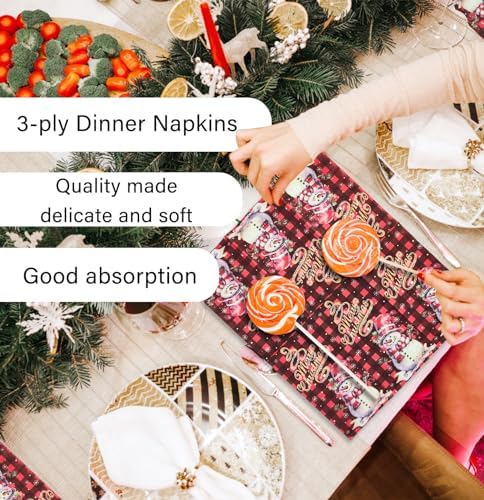 【CHRISTMAS PAPER NAPKINS】Red and black plaid paper napkins are made of raw wood pulp, which is highly absorbent, soft and comfortable. The paper guest towels is suitable for using in bathroom, kitchen, living room, office party.