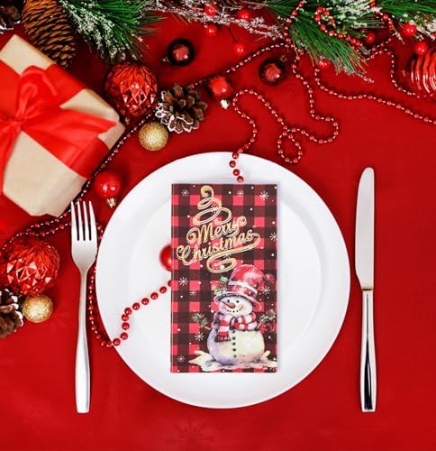 【PREMIUM DISPOSABLE GUEST HAND TOWELS】The paper towels are designed with black and red checkered backgrounds and using elements such as snowman and snowflakes, which will bring you a strong Christmas atmosphere. The Christmas cocktail napkins is a practical decoration and will make your room more unique and fashionable.