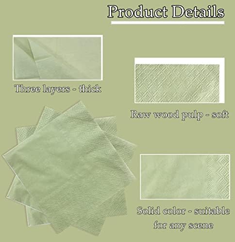 【PREMIUM DISPOSABLE NAPKINS】The solid-colored napkins disposable is simple but advanced, which can bring personalized decoration to your wedding or party. The sage green cocktail napkins is a practical decoration and will make your room more unique and fashionable.