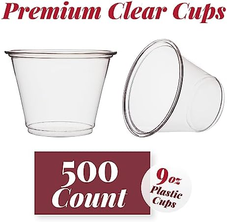 500 Clear Plastic Cups | 9 oz Plastic Cups | Clear Disposable Cups | PET Clear Cups | Plastic Water Cup | Plastic Wine Glasses | Clear Plastic Party Cups | Bulk Plastic Tumblers