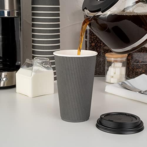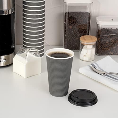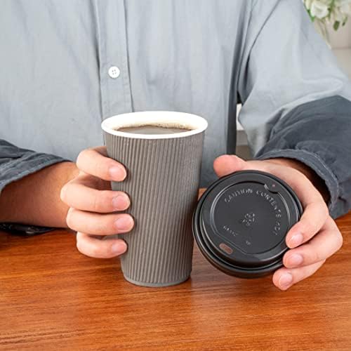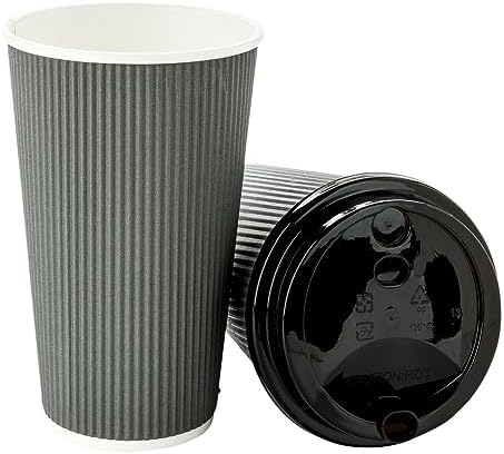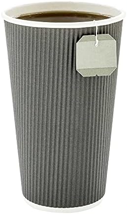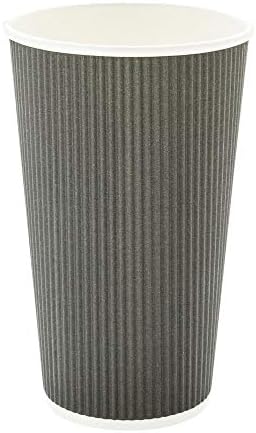 Tall, ripple-walled and designed with a chic white lip to compliment the cup’s gray color, this 16 ounce disposable cup is perfect for serving coffee, teas, hot chocolates, macchiatos, lattes, mochas, and just about any other freshly brewed hot shot of java. Chic, sustainable, and part of the one lid three sizes coffee cup collection, this coffee cup and teacup is made from durable and nature-friendly materials, and comes in a sleek gray color. Our One Lid Three Sizes 16 ounce Gray Disposable Ripple Wall Coffee and Tea Cup holds up to 16 ounces and is shipped in bulk in a 500 count box. Lids are sold separately.
