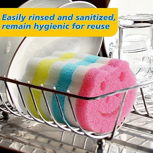 6 Pack Non-Scratch Scrub Sponge, Dual-Sided Temperature Controlled Kitchen Sponge for Dishes, Odor Resistant Scrubber, Cute Frog Scrub Sponges Household Cleaning Pads Bathroom Wall Cleaner