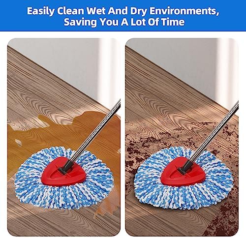 【Wide Application】-Microfiber Rotary Mop Refill harnesses the power of microfiber to provide a deep clean to your floors. Triangular mop head for any floor type: hardwood, tile, laminate, linoleum, vinyl, etc. 360-degree rotation helps to mop under furniture and better cleans corners. You can also wash the car. Wet and dry use. Dry mops are used to absorb hair, dust, and wet mops are used to remove stains, to meet your various needs.