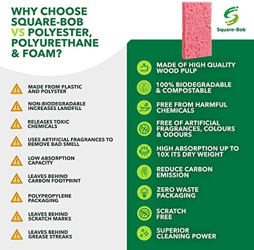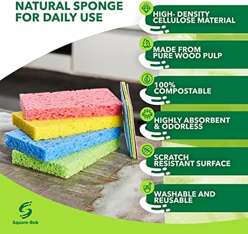 Easy to Clean & Sanitize: No need to struggle with bleach and detergents, run them through a dishwasher to keep these household cleaning sponges clean and odor free; being plant-based, they do not have any harmful effect on your health or the planet