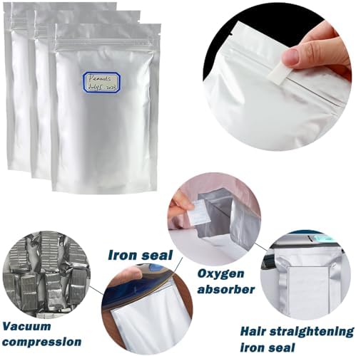 Multipurpose use: These large 1 Quart stand up mylar bags are perfect for the nuts, dried fruits, candies, cookies, beans, grains, and snacks . You can also use these mylar vaccum seal bags to pack the electronic components, pieces of jewelries, cosmetics, decorative gadgets, outdoor emergency products and many more items you want.