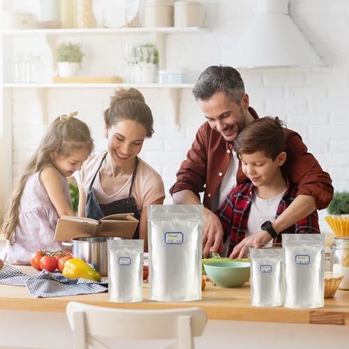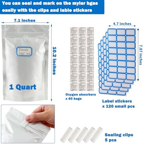 Superior Materials & Food Safety: Made from food-safe plastic aluminum foil materials, these 1 Quart stand up mylar bags are waterproof, dust-proof, and damp-proof with the included oxygen absorbers to enhance food preservation. These reclosable mylar bags ensures your food remains fresher for longer, preserving its taste, nutrition, and quality.