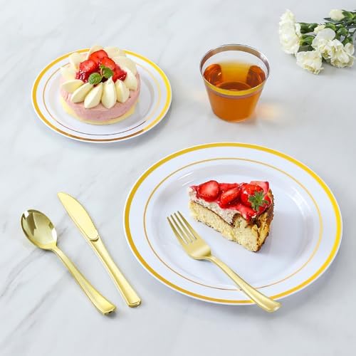 ELEGANT DESIG: The dinnerware set is designed in white and gold with a sleek look. It would look great on any table and match well with all table setup styles. The elegance of the modern cutlery appearance can really elevate the party and show a hit at the event with your guests by the design and quality.