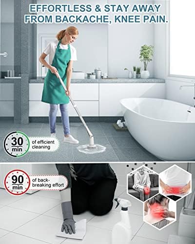 Upgrade cordless electric scrubber is equipped with 600RPM poweful spin speed for bathroom, bathtub, tile floors.