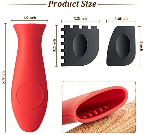 Silicone hot handle holder: made of soft silicone material, the surface is smooth and non-textured and easy to clean by hand; High heat-resistant silicone resin can protect hands up to 450°F, providing a firm and comfortable grip when handling hot cookware on the stove