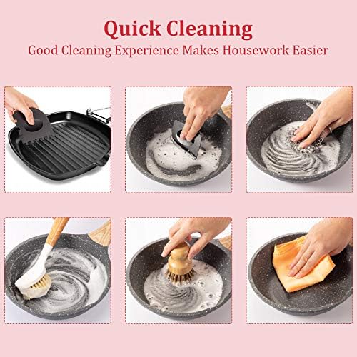 Quality material: quality stainless steel scrubber, bamboo scrub brush and plastic pan scrapers, durable, smooth and rust-proof, can scrape the most stubborn dirt and grease, reusable tools will not easily break or crack and won’t shed or smell bad