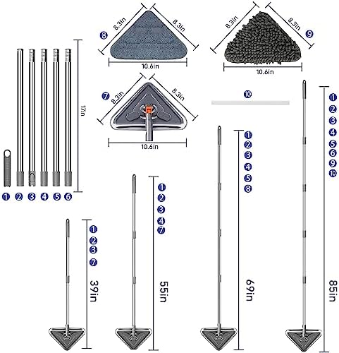 39-85Inches Adjustable Length: Wall cleaning mop comes with 5 section extension rods, You can customize it according to the length for you need, the adjustable length range is 25-85″, With this cleaning mop, you can more easily clean your ceiling without the need for a ladder or tiptoes.