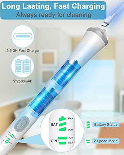 🔋【Rechargeable and Fast Charging】Never worry about running out of power again. The Electric Spin Scrubber features fast charging technology and a Type C charging port, making recharging more convenient. The newly added battery level indicator allows you to monitor the remaining battery power in real-time, enabling you to plan your cleaning tasks effectively and recharge in a timely manner.