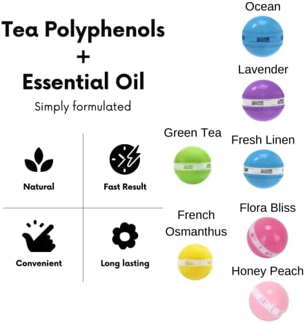 Natural and effective deodorizing balls filled with odor eliminating tea polyphenols and essential oil clean burst fresh scent