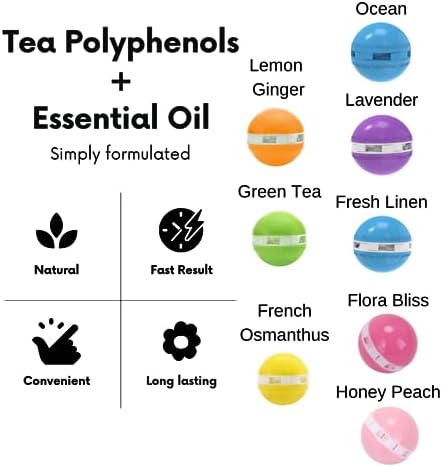 Natural and effective deodorizing balls filled with odor eliminating tea polyphenols and essential oil clean burst fresh scent