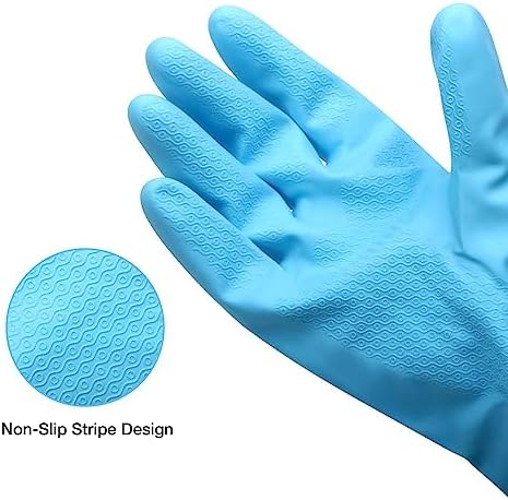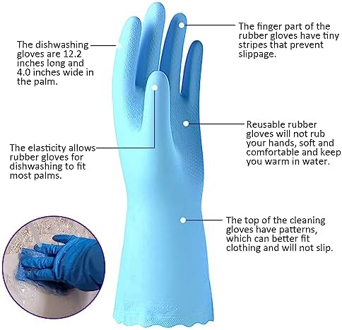 Cleaning gloves are latex-free and durable enough to be reused. Gloves dishwashing can be washed with water after use and left to dry to extend their life. No unpleasant odor, comfortable to use.