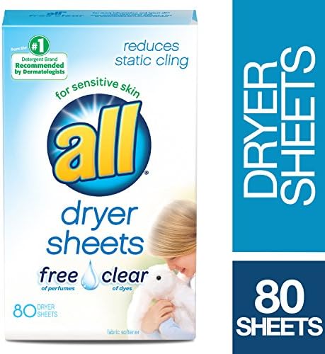 Make fabrics softer and more comfortable against your family’s sensitive skin with all Fabric Softener Dryer Sheets for Sensitive Skin. Leave fabrics virtually static-free, more comfortable on sensitive skin, and free of irritating residue with these specially-treated dryer sheets. Made by the #1 detergent brand recommended by dermatologists for sensitive skin, these hypoallergenic dryer sheets are 100% free of dyes and perfumes. Toss in a sheet with a load in your dryer for clothes and bedding that are gentle on the skin. Use with all Free Clear detergent and fabric softener for clean and soft clothes with static cling reduction in the dryer. This box contains 80 dryer sheets.