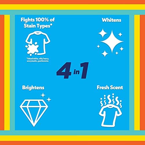 Bring in serious cleaning muscle for your worst stains with all OXI liquid laundry detergent. Full of concentrated cleaning power with OXI power that whitens and brightens your clothes. With Active Stainlifters and in-wash pre-treaters to fight your toughest stains. Leave your clothes smelling clean with a fresh scent. all OXI is safe to use in any washing machine and at any temperature. OXI has got it all: concentrated cleaning power, In-Wash Pre-Treaters, stainlifting and whitening capabilities and a never-say-never attitude. Bring it, muddy baseball pants. This concentrated formula delivers 2X more cleaning power in every drop vs our standard all OXI detergent, so you don’t have to use as much to fight your family’s toughest stains. This package includes one 80.1-ounce bottle of all OXI 2X concentrated liquid laundry detergent, enough for 90 loads of laundry.