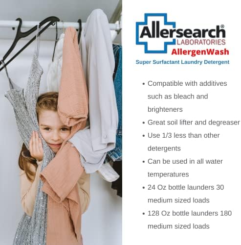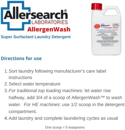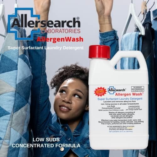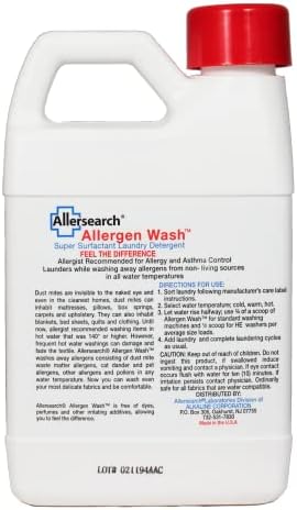 Allergen Wash contains the powerful ACARIL ingredient that washes away allergens consisting of dust mite waste matter, cat and dog dander, and other allergens and pollen from all fabrics without having to use water temperatures of 140 degrees or higher