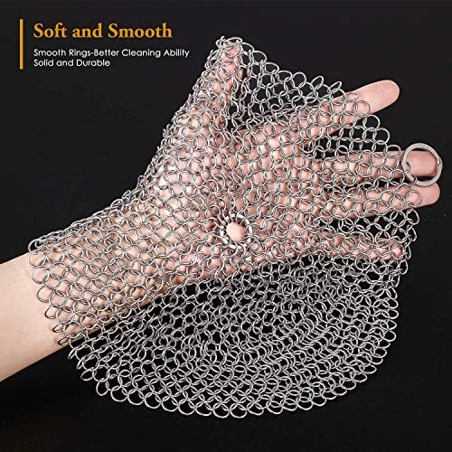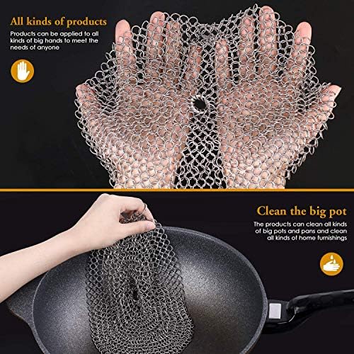 Amagabeli 316 Stainless Steel Round Cast Iron Cleaner Specifications: Color: Silver Size: 8 inch Diameter Mateiral: 316 stainless steel Interface: Manually closed Series: 2nd generation round chainmail series 4 Series for you to choose: Classic series with classic rings 2nd generations round chainmail series Upgraded series with pan scraper Luxury series with smaller soldered rings; Amagabeli 316 Stainless Steel Round Cast Iron Cleaner Specifications: Color: Silver Size: 10 inch Diameter Mateiral: 316 stainless steel Interface: Manually closed Series: 2nd generation round chainmail series 4 Series for you to choose: Classic series with classic rings 2nd generations round chainmail series Upgraded series with pan scraper Luxury series with smaller soldered rings