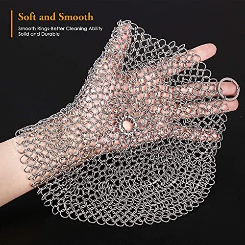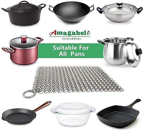 Amagabeli 8″x6″ Stainless Steel Cast Iron Cleaner Bundle 10”x10” 316 Stainless Steel Cast Iron with Round Shape
