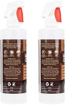 Amazing Leather Cleaner/Conditioner/Deodorizer | Powerful, Natural Enzyme Cleaner | USA Made | Great for Leather & Vinyl, Furniture, Boots, Purses, Clothing | Removes Stains Spray & Wipe (16oz 2 PK)