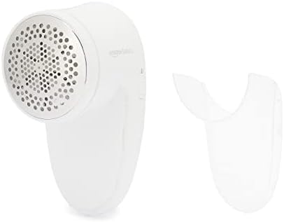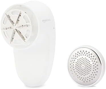 Includes 1 white cordless fabric shaver with a mesh lid, 2 spare blades, and 1 cleaning brush