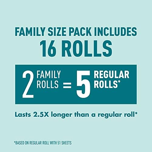 Includes 16 Huge Rolls (8 Packs of 2 Family Rolls) of 128 2-ply sheets per roll
