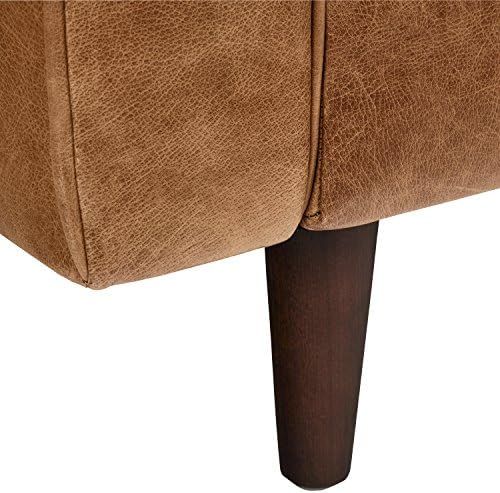 Solid hardwood frame, tapered wood legs and foam padding with top grain leather upholstery.