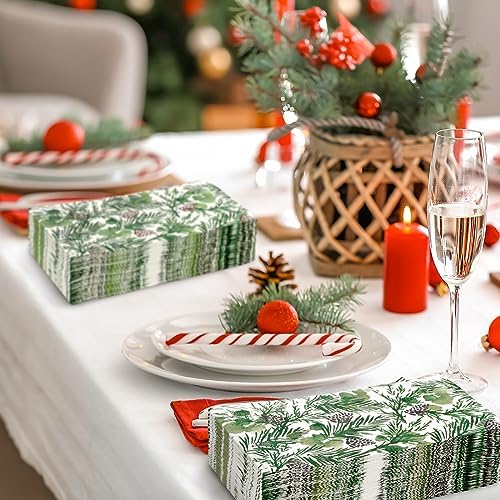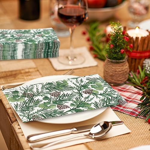 UNIQUE DESIGN: Our guest napkins adopts the unique design with pine branches and pine cones. While enriching the appearance of the napkins, it also increase the fun and pleasant atmosphere of Christmas.